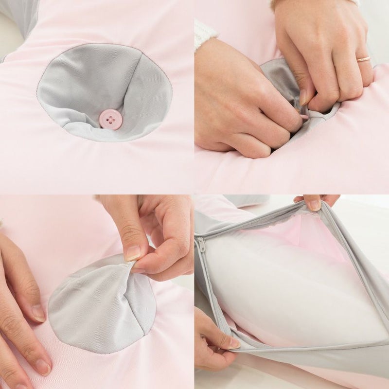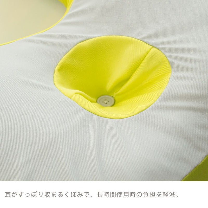 抱きつきやすい適度な弾力と、肩の負担を軽減する程よい厚みがあります。耳がすっぽり収まるくぼみで、長時間使用時の負担を軽減します。ニット生地でできたカバーは柔らかくて優しい心地です。専用カバーは取り外しが可能。カバーのみ洗濯できます。