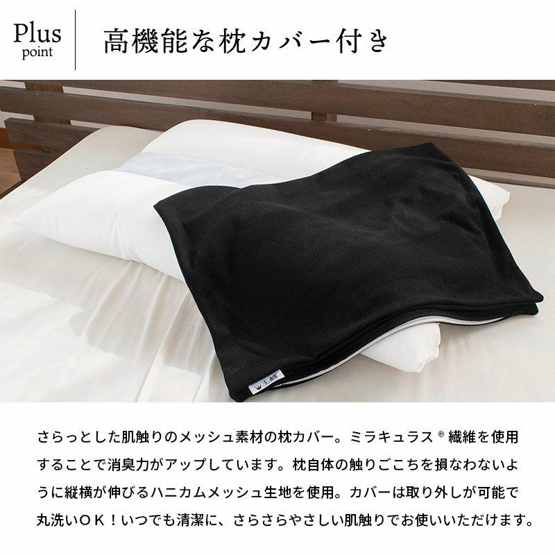 備長炭パイプ&吸水・速乾・消臭機能繊維の枕カバーのW消臭機能でニオイをおさえる!