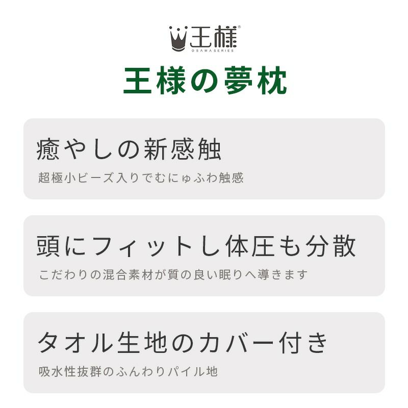 王様の枕シリーズ 【タオル地カバー付き】王様の夢枕 ビーズまくら 52×34×12cm
