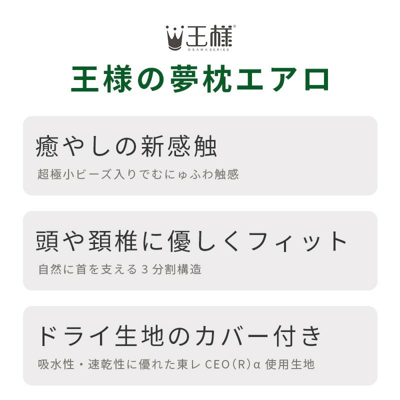 王様の枕シリーズ 【吸水速乾カバー付き】王様の夢枕 エアロ ビーズまくら 56×40×7cm