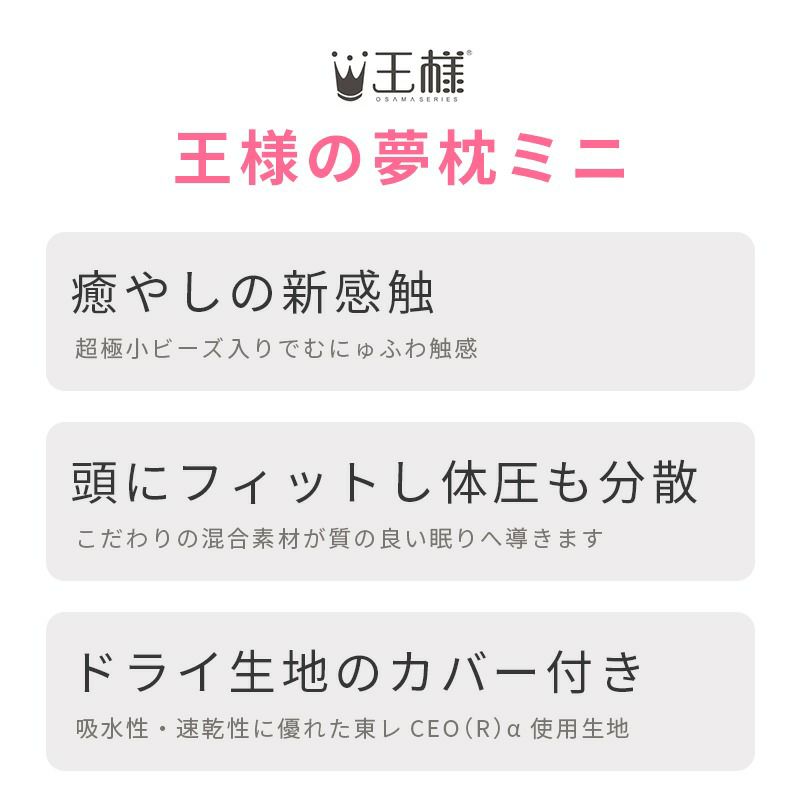 王様の枕シリーズ 【吸水速乾カバー付き】王様の夢枕 ミニ ビーズまくら 46×30×9cm