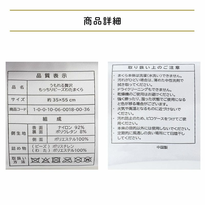 他の画像を見る 在庫切れ 即日発送 会員セール MORIPiLO うもれる贅沢 もっちりビーズわたまくら 35×55cm ¥ 4,928 税込 会員セール価格 ¥ 4,435 税込 お気に入りに登録する