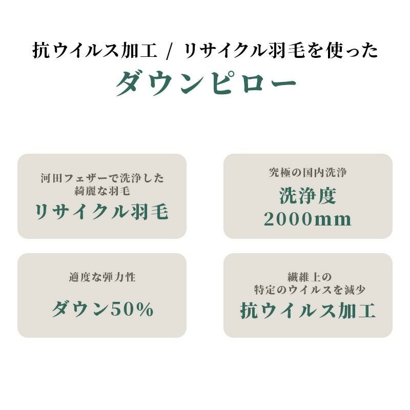 他の画像を見る 即日発送 会員セール 河田フェザー リサイクルダウン ダウンピロー 羽毛 枕 まくら 日本製 50×70cm ¥ 8,980 税込 会員セール価格 ¥ 8,082 税込 お気に入りに登録する