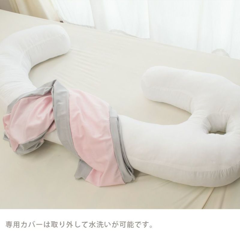 横向き寝をサポート。左右どちらを向いてもお使いいただけます。腰に巻きつければ、授乳枕や腰枕としても使えます。