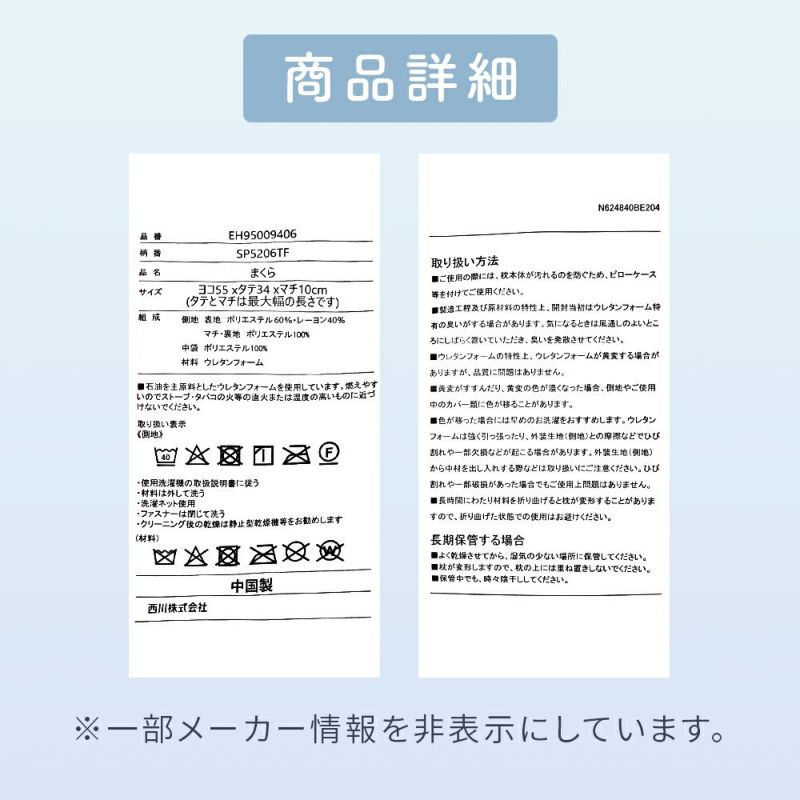 商品タグに記載されているサイズは「34×55×10cm」です。首元のウレタンを入れた状態をメジャーで測ったおおよその値は、約33×54cm、高さは肩側が約10cm、反対側の低い部分は約6cmですが、個体差により誤差がございます。