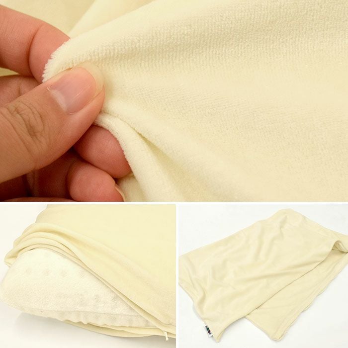 枕カバーは日本製で綿80%、ポリエステル20%のシンカーパイル地を使用した高級素材です。ふんわり柔らかく、優しい肌触りで吸湿性にも優れています。