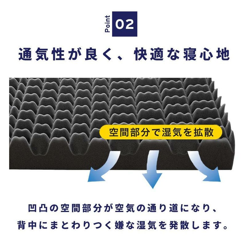 ベッドマットレスの上に重ねて、また、床に直接敷いてお使いいただけます。折りたたみ簡単な三つ折りタイプ。使わないときは立てかけるだけで湿気対策になります。