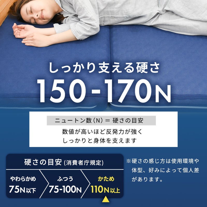 フローリングや畳の上に直接敷いても、底付き感を感じさせないしっかりとした寝心地をご体感いただけます。