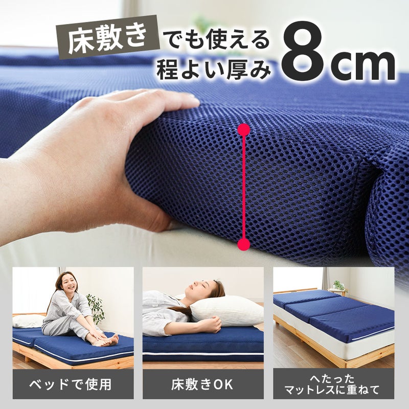 4. 高反発マットレス 三つ折り 日本製 Anmin Fit 厚さ8cm 選べる2タイプ(硬さ均一/腰部硬め) プロファイル 体圧分散 敷き布団