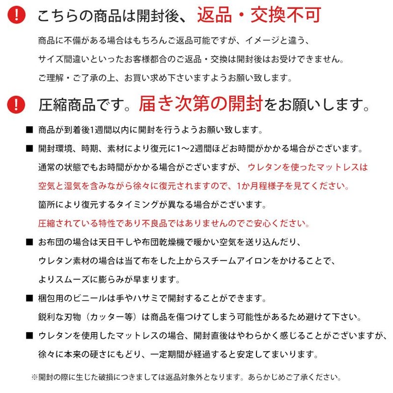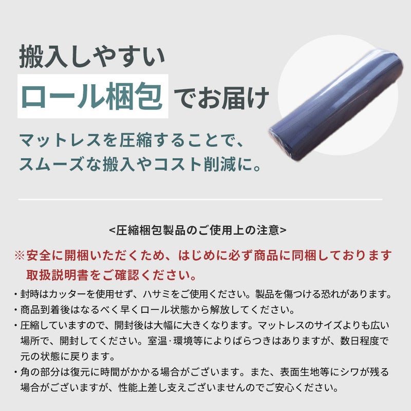軽量設計なので、ロフトベッドなど高い場所でのご使用や、来客用の保管にも大変便利です。普段のお手入れは、お部屋の隅に立てかけて風を通すだけでOK。お届け時はコンパクトなロール圧縮梱包で、搬入もスムーズです。