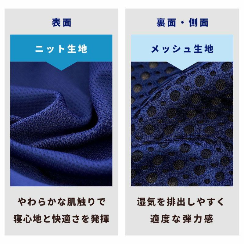 表地はやわらかなニット生地、側面・裏地は通気性の良いメッシュ生地。側地は取り外して洗濯機で丸洗いOK! ※中材ウレタンは洗えません