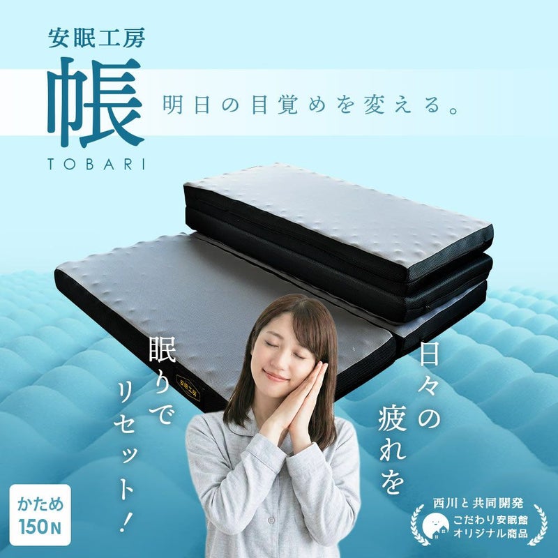 5. 西川 安眠工房シリーズ 帳-tobari- 四つ折りマットレス 折りたたみ シングル 97×195cm 厚み8cm