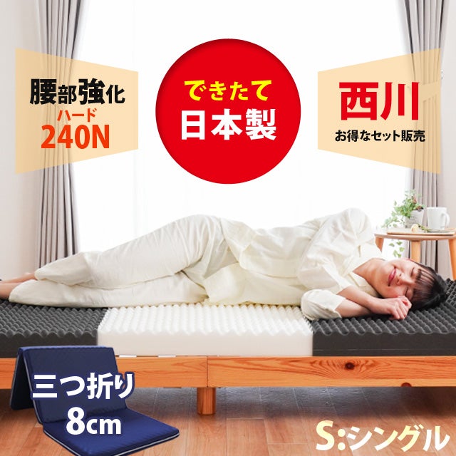 4. 高反発マットレス ハード 三つ折り 日本製 Anmin Fit 腰部240N 厚さ8cm プロファイル 体圧分散 敷き布団 シングル