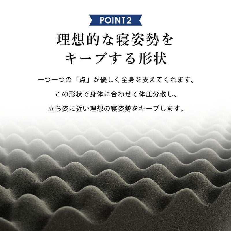 表面の凸凹形状が身体を点で支えることで、血流を妨げにくい理想的な体圧分散を実現します。