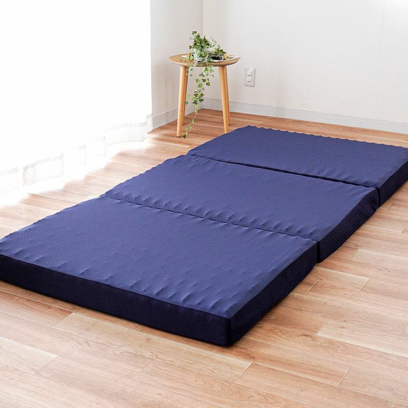 ベッドマットレスの上に重ねて、また、床に直接敷いてお使いいただけます。折りたたみ簡単な三つ折りタイプ。使わないときは立てかけるだけで湿気対策になります。