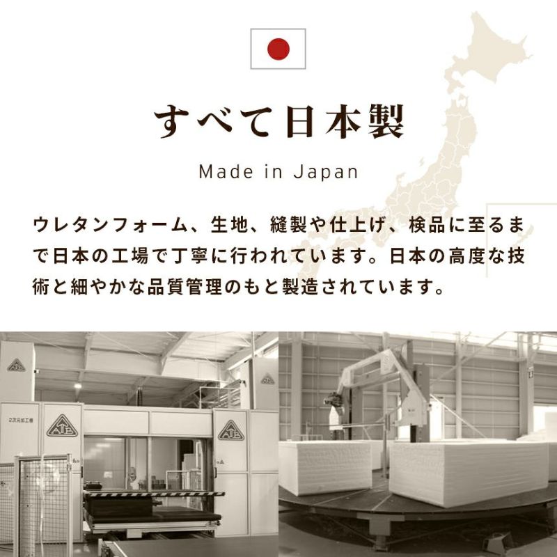 ウレタンフォーム、生地、縫製や仕上げ、検品に至るまで日本の工場で丁寧に行われています。日本の高度な技術と細やかな品質管理のもと製造されています。