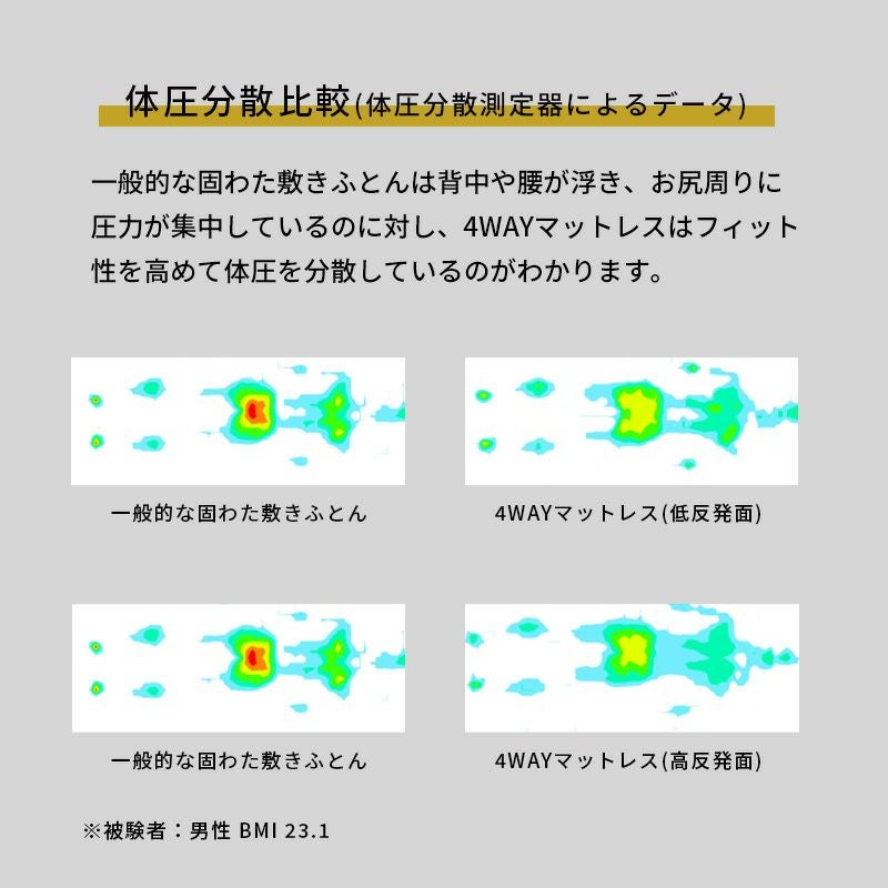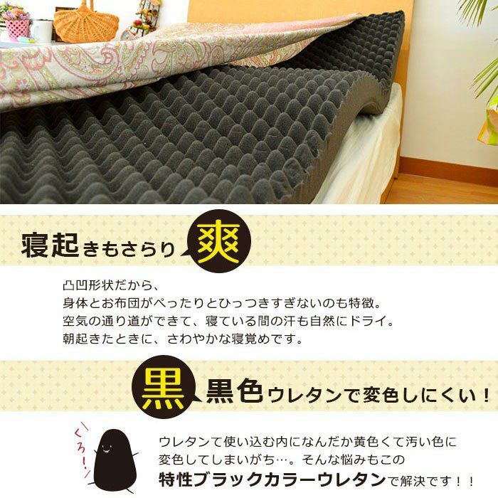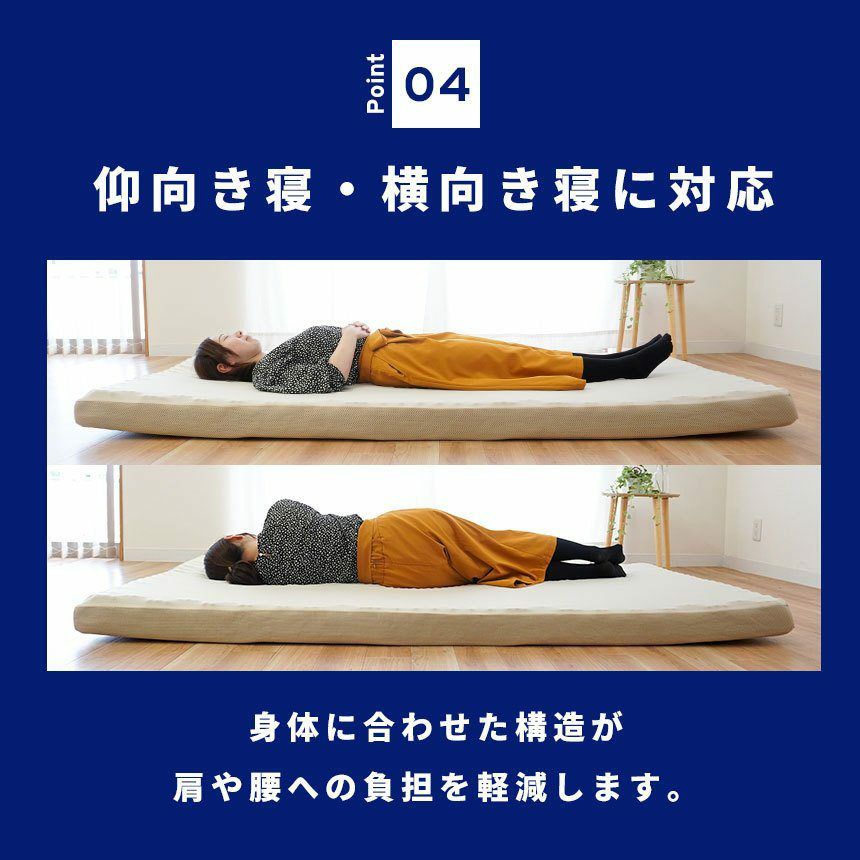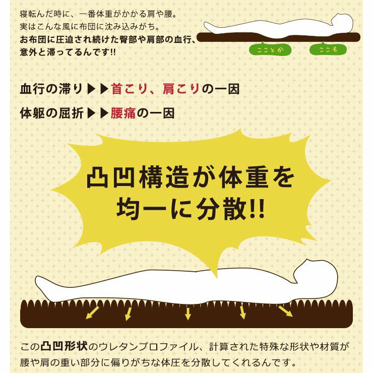 柔らかいウレタンと硬いウレタンの2つで身体を支える健康敷きふとん2層モデル。ありそうでなかった独特の寝心地が特徴です。 バランスのいい寝姿勢が維持できるのはもちろん、寝返りのサポートもしてくれる高品質なウレタンを使用しています。