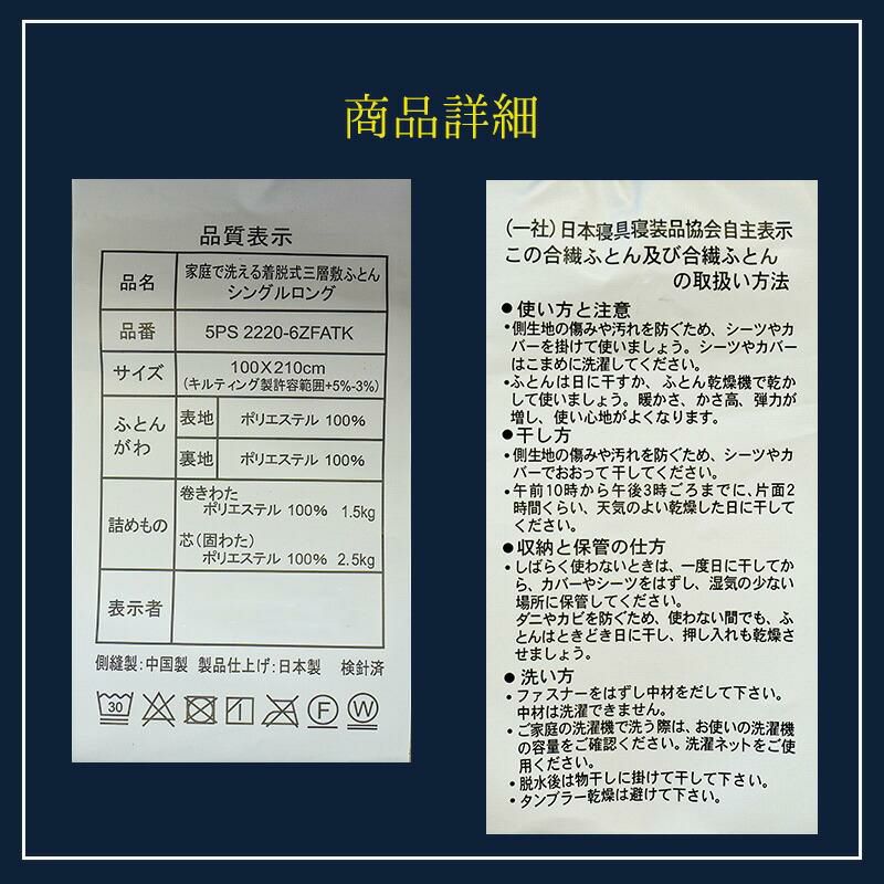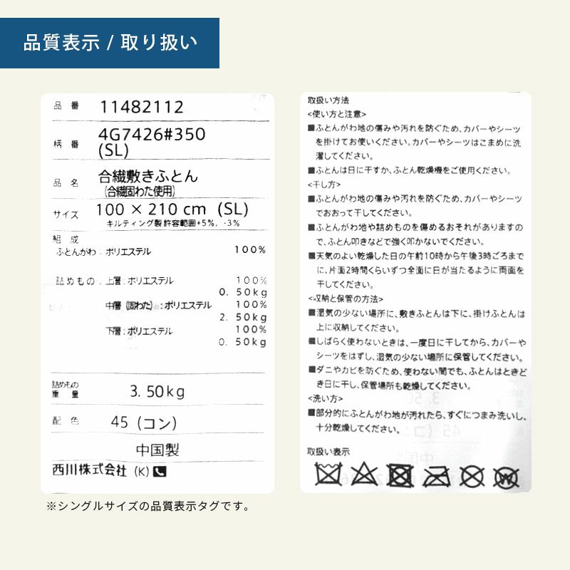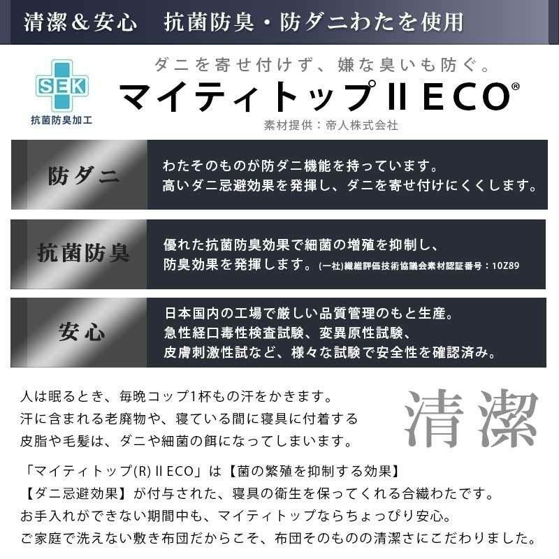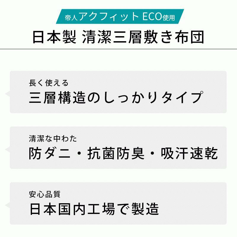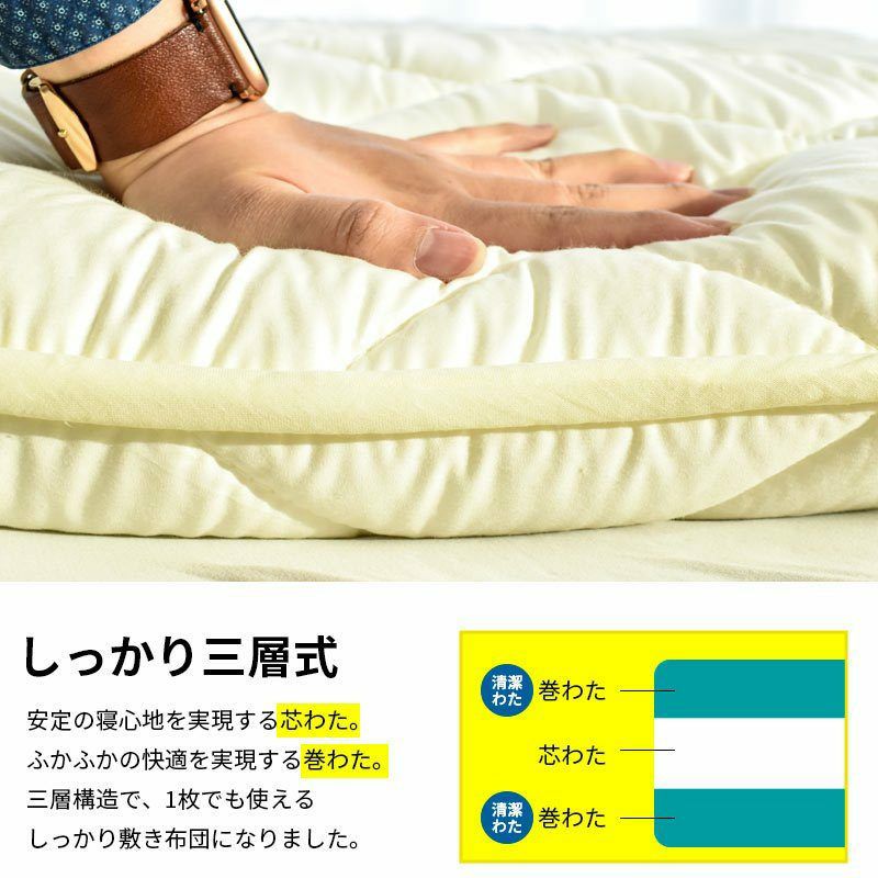 他の画像を見る 在庫切れ 【完売】敷布団 シングル 100×210cm 極厚 三層 帝人 アクフィットECO SEK 防ダニ 吸汗速乾清潔わた 抗菌 防臭 日本製 ¥ 8,900 税込 お気に入りに登録する