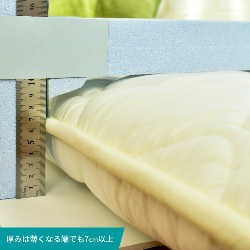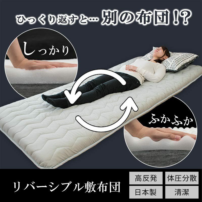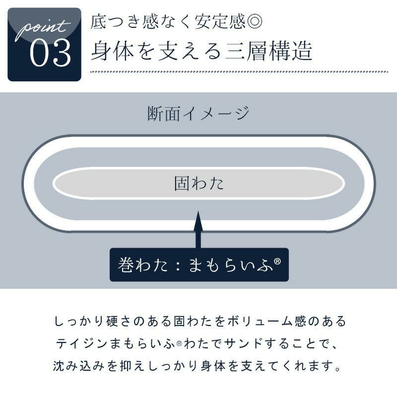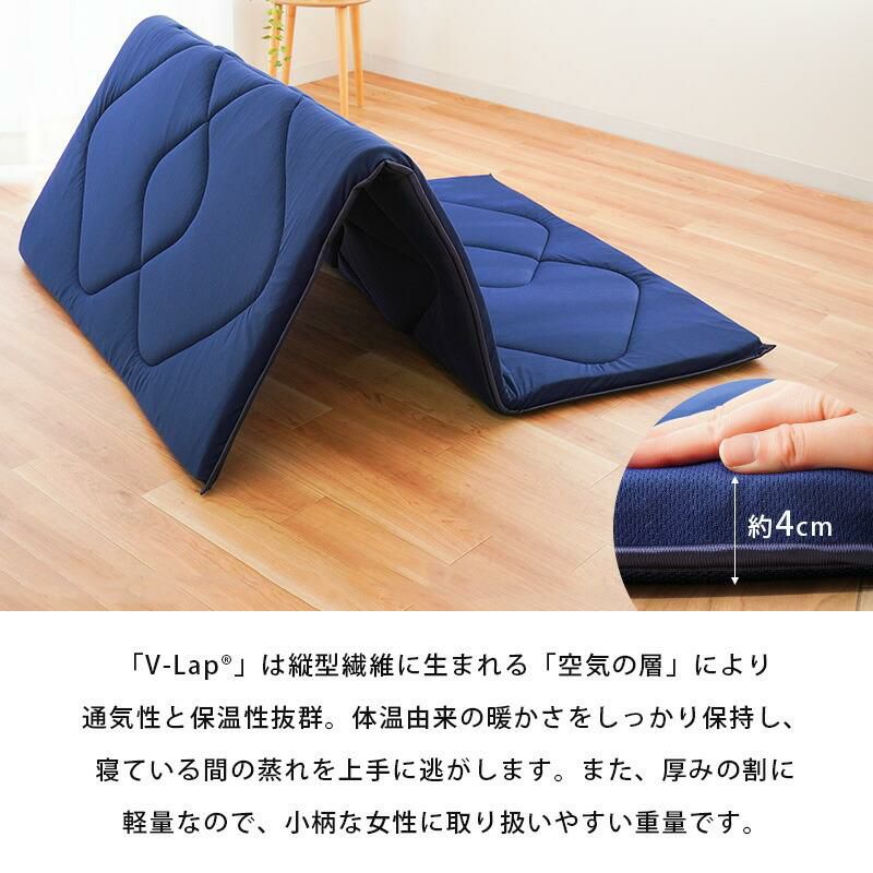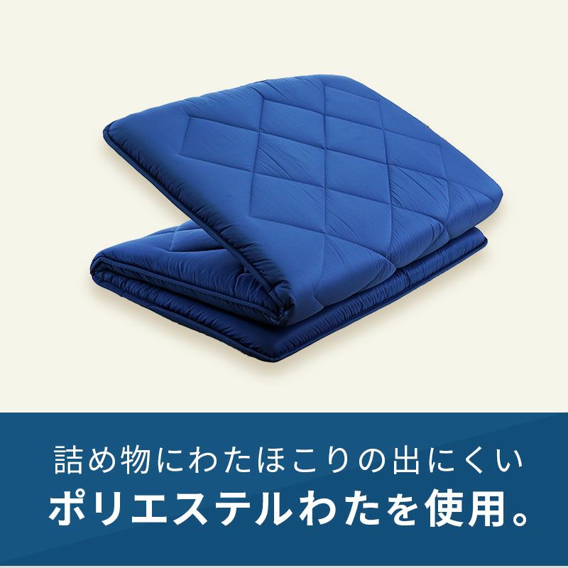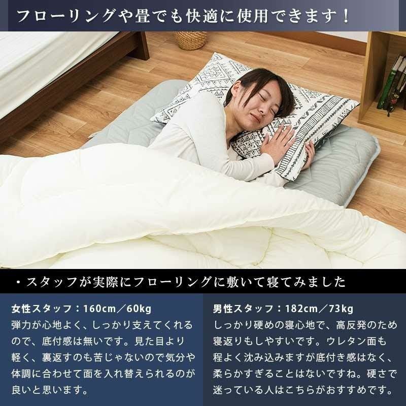 当店のおすすめ敷き布団 フローリングでも底付しない敷き布団 高い高反発性(高弾性)を誇る素材V-Lap® しっかりと身体を支えて、体圧を分散してくれる敷布団です。抗菌防臭・防ダニ効果のあるマイティトップを中綿に採用しています。 もっと見る