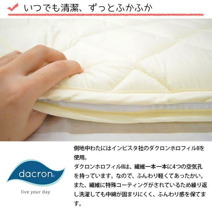 他の画像を見る 在庫切れ 【完売】洗える 敷き布団 シングル Mat Fiberfill (旧:ダクロンホロフィル) 完全着脱式 100×210cm 日本製 ¥ 25,500 税込 お気に入りに登録する