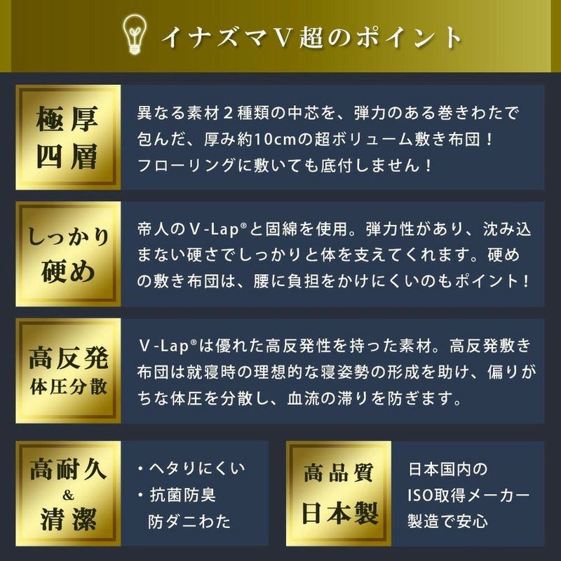 四国に工場を持つ日本のメーカーが製造した敷き布団です。