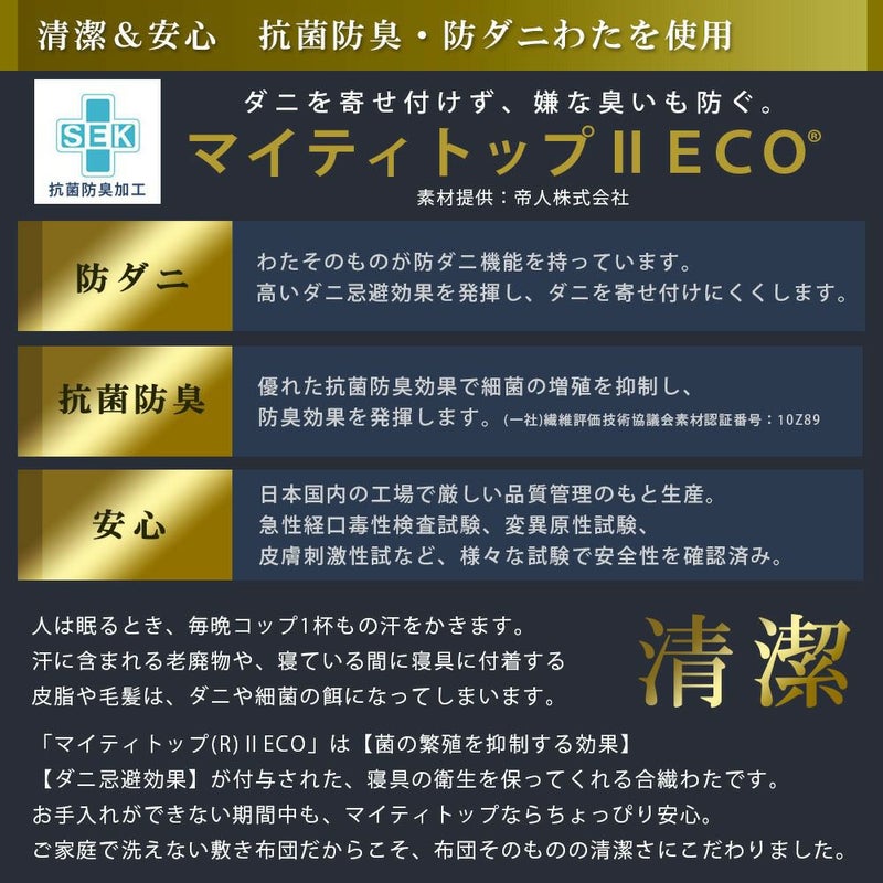 中材の周りにはダニを寄せ付けず、嫌な臭いを防いでくれるマイティトップⅡ ECO®を採用しました。