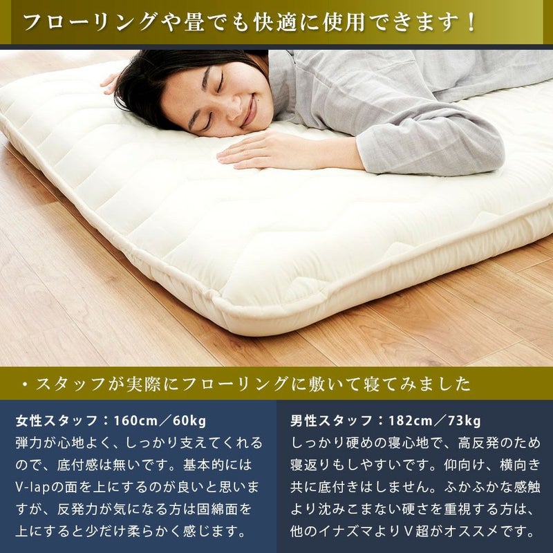 敷き布団を使われる際にフローリングや畳の上に敷いても底付き感がないか気になる方も多いと思いますが、