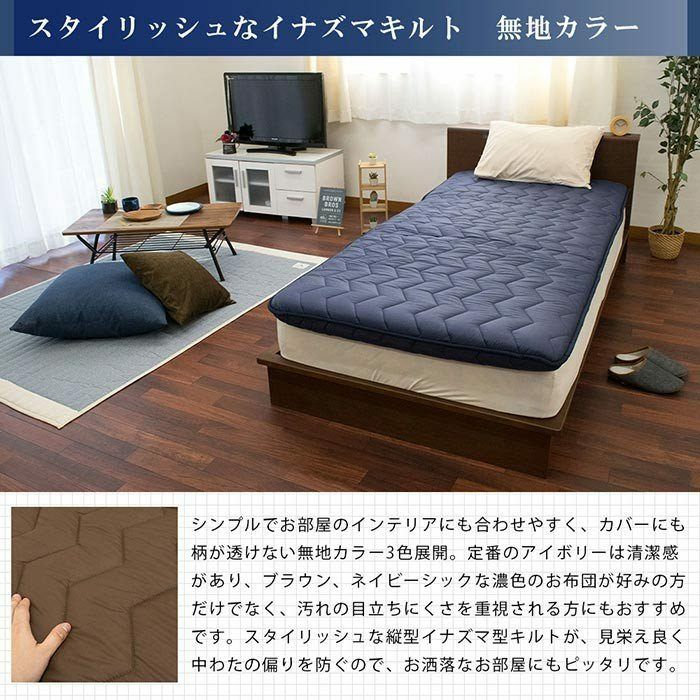 体圧分散敷き布団・凹凸ウレタン入りボリューム敷き布団「FUKATTO(ふかっと)」シリーズの固綿入り四層タイプ。スタイリッシュなイナズマキルトが特徴。ふかふか柔らかなのにしっかり支える!抗菌防臭・防ダニわたを使用しているので清潔。安心の日本製です。シンプルな無地、ブラウンとアイボリー、ネイビーの3色展開。