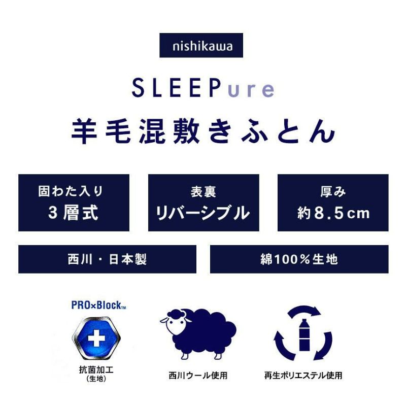【完売】西川 羊毛混三層式固綿入り 敷き布団 スリーピュア シングルロング 100×210cm