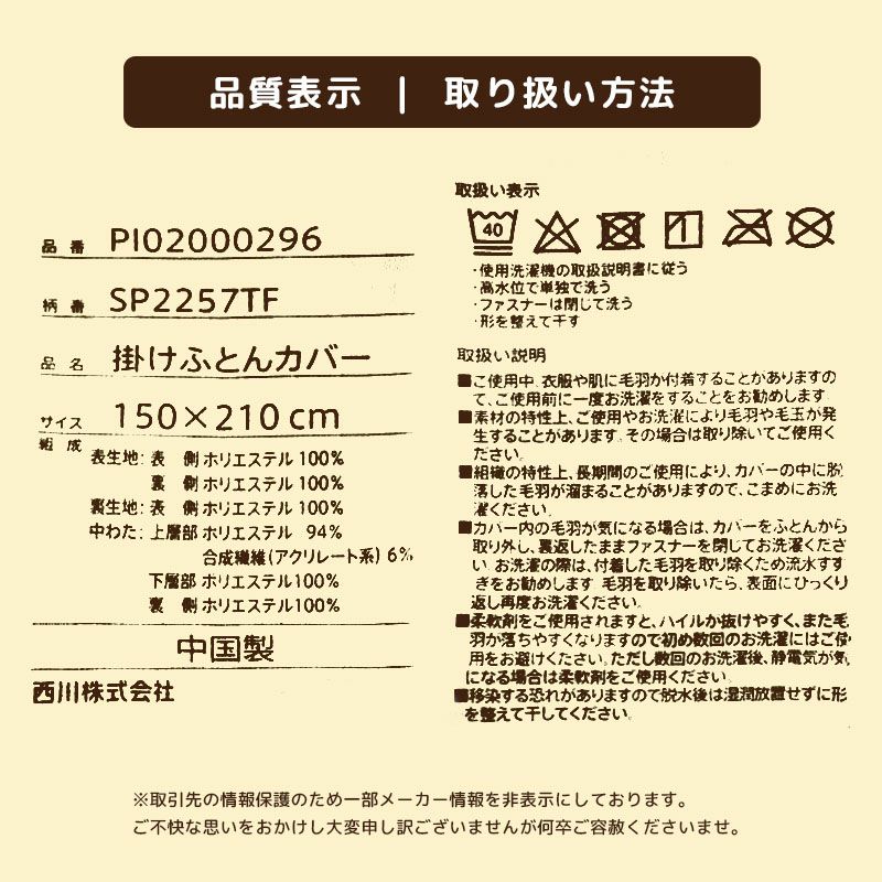 他の画像を見る 即日発送 会員セール 西川 しっとりとろける 纏生 毛布にもなる フランネル あったか 掛け布団カバー セミダブルロング 175×210cm ¥ 8,980 税込 会員セール価格 ¥ 8,082 税込 お気に入りに登録する
