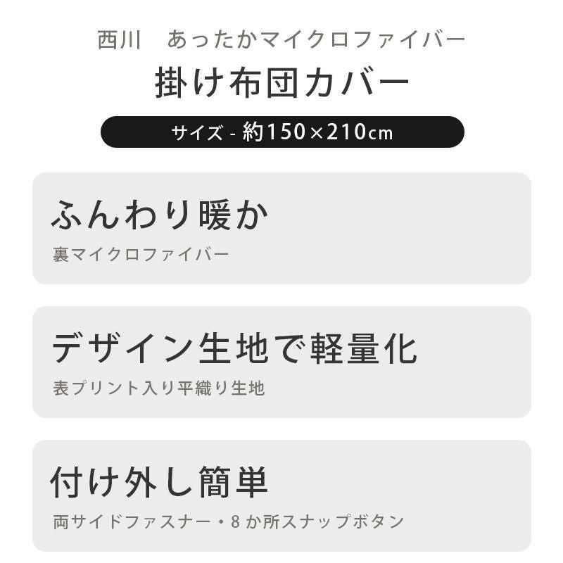 他の画像を見る 在庫切れ 即日発送 会員セール 西川 マイクロファイバー 掛け布団カバー 冬用 シングルロング 150×210cm ¥ 5,980 税込 会員セール価格 ¥ 5,382 税込 お気に入りに登録する
