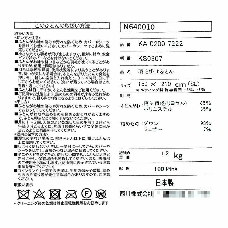 他の画像を見る 在庫切れ 即日発送 会員セール 当社限定 西川 羽毛布団 グース ダウン90% セミダブルロング 170×210cm 安眠工房 ¥ 49,800 税込 会員セール価格 ¥ 44,820 税込 お気に入りに登録する