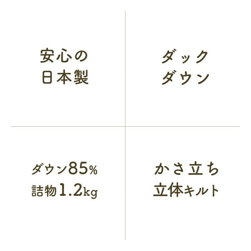 他の画像を見る 在庫切れ 即日発送 会員セール 当社限定 京都羽毛 京都職人の羽毛布団 シングル ダウン85% 京都羽毛 初 (うい) 増量1.2kg 150×210cm 4.00 ¥ 19,800 税込 会員セール価格 ¥ 17,820 税込 お気に入りに登録する