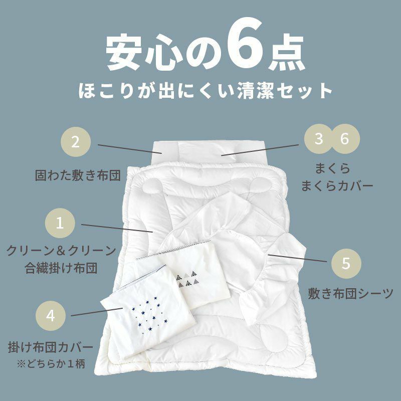 他の画像を見る 即日発送 会員セール ベビー布団セット 安心6点セット 「ほこりが出にくい清潔セット」シンプル モノトーン 刺繍 スター 三角 日本製 西川 ¥ 17,800 税込 お気に入りに登録する